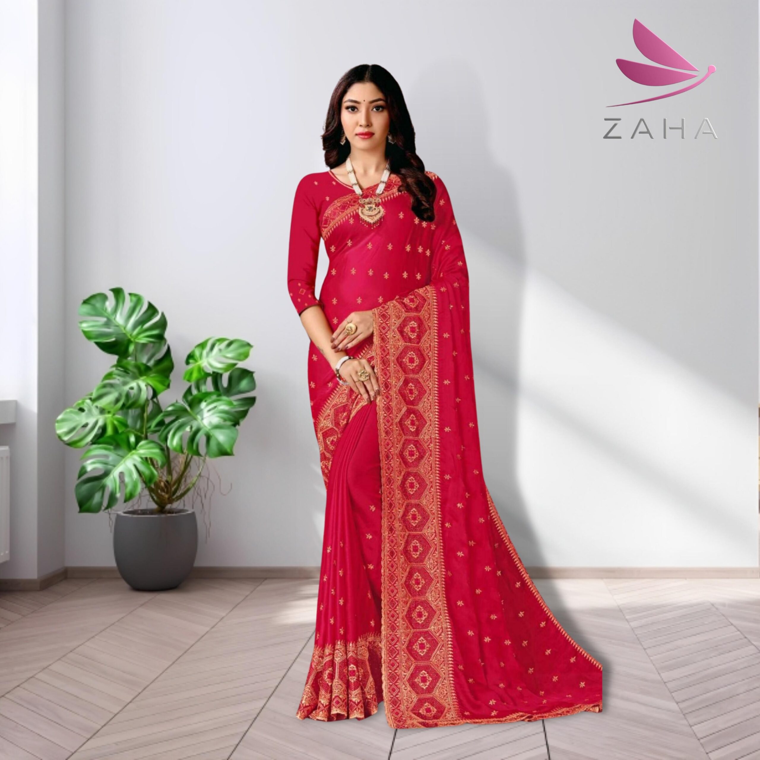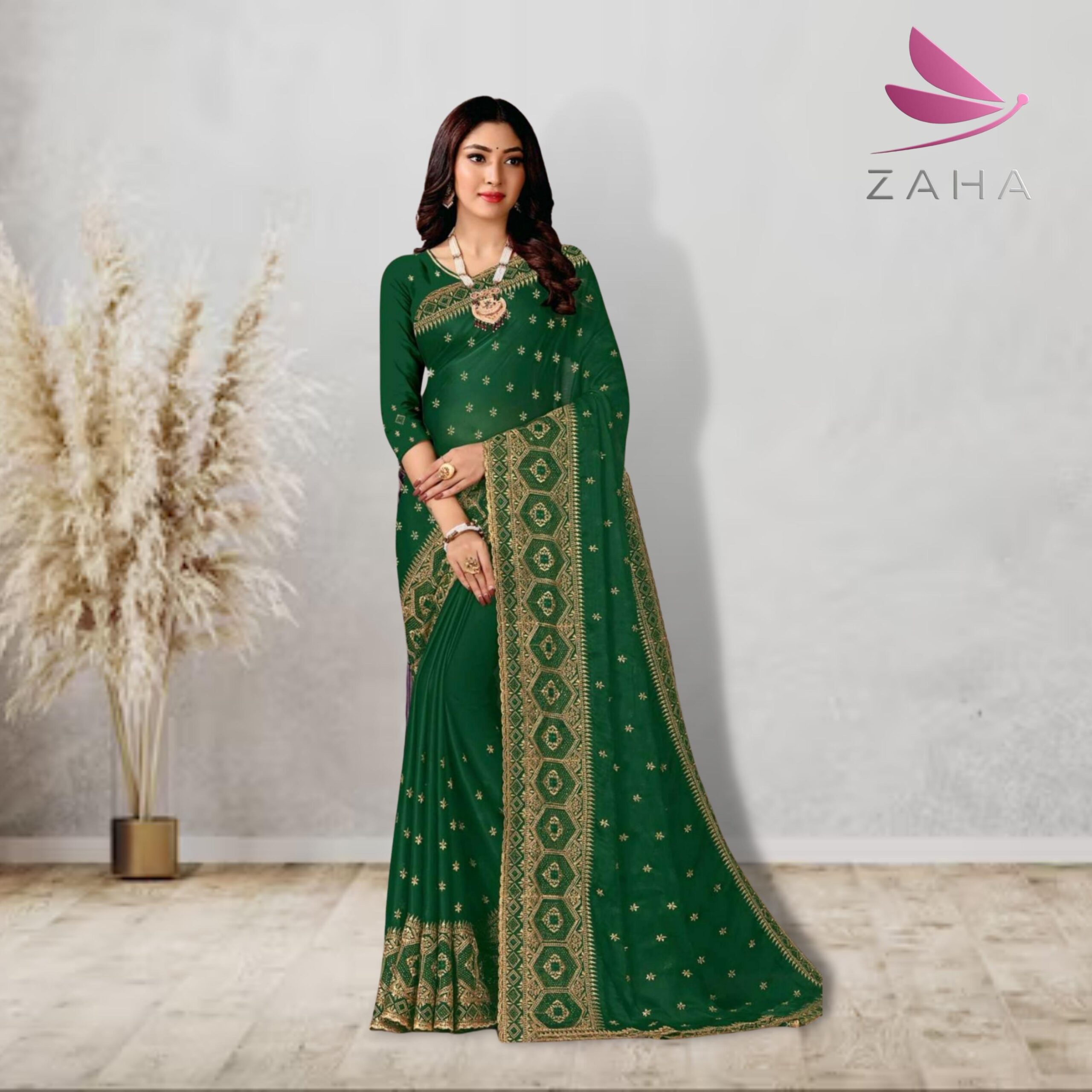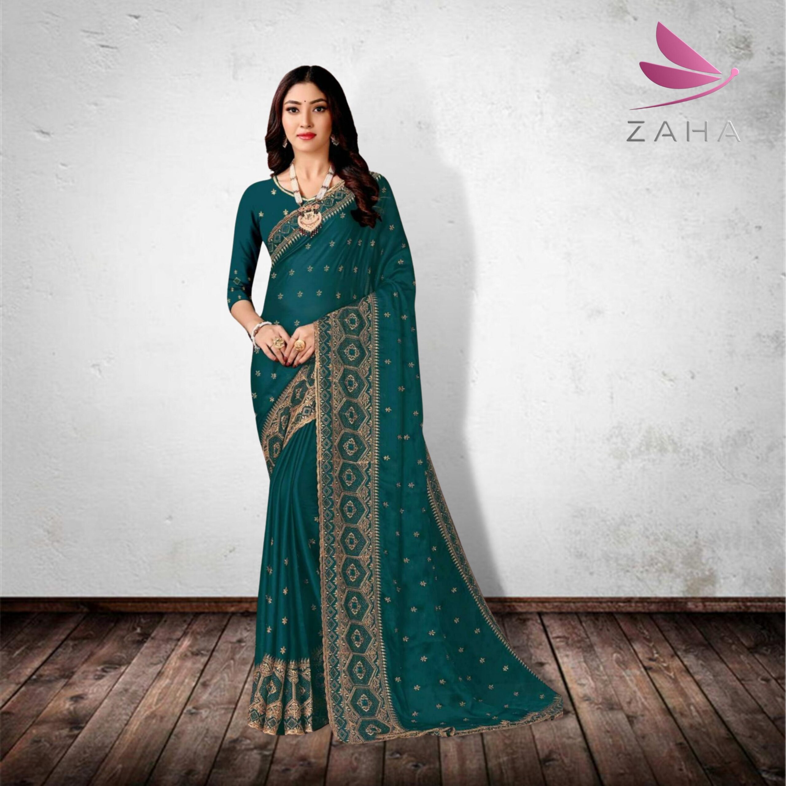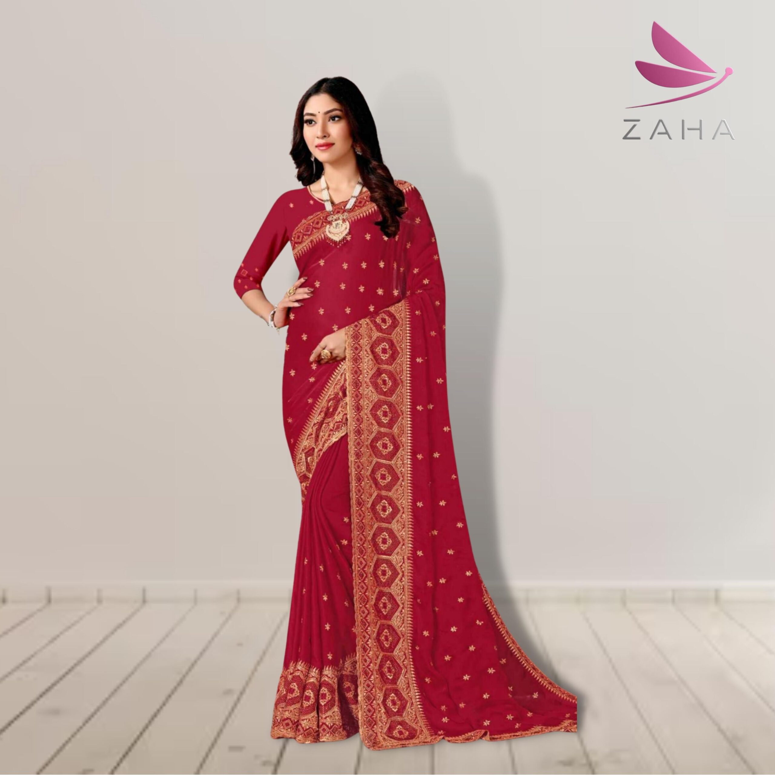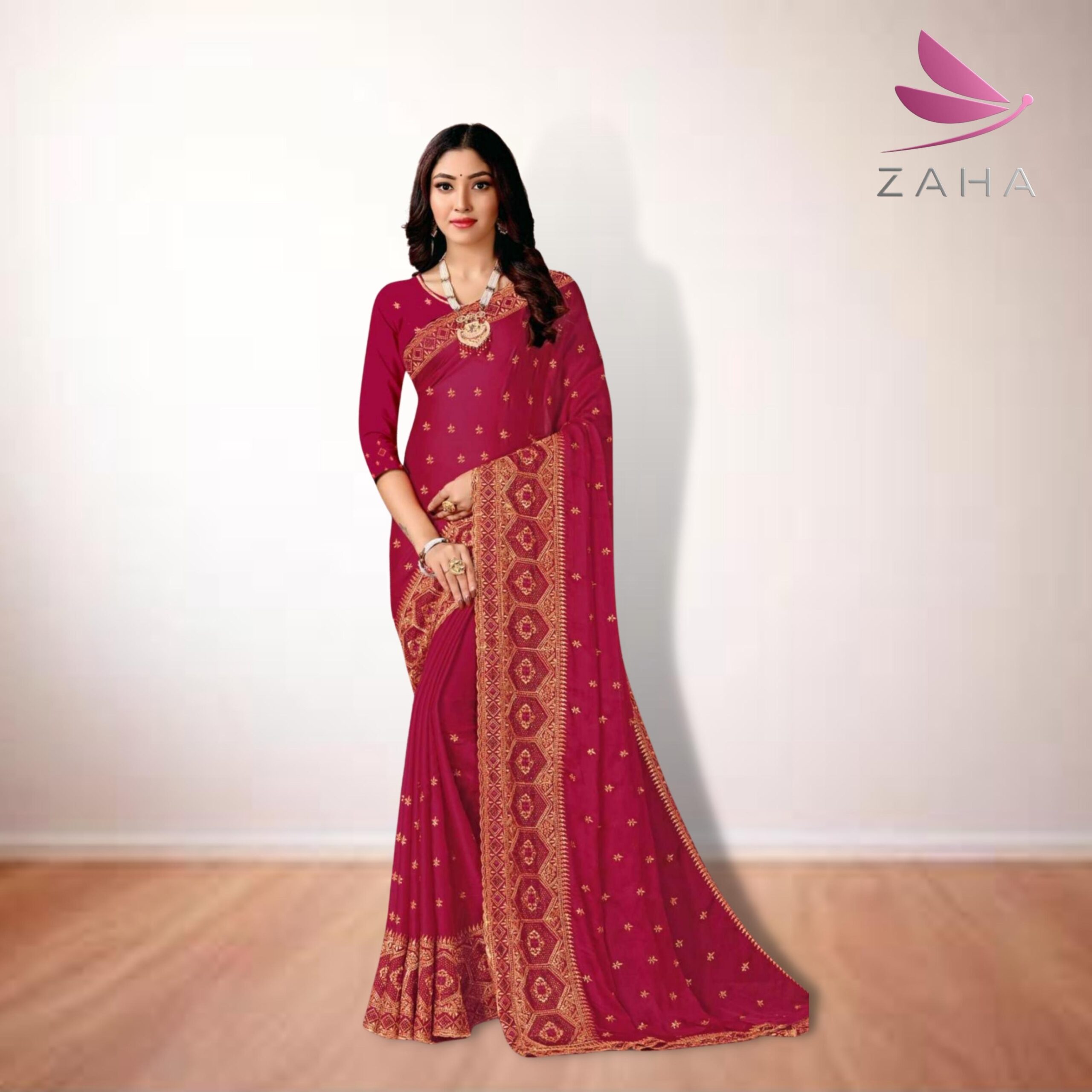Be the first to review “Satin Chiffon Shiroshke Heavy Zarkan Work Sarees”